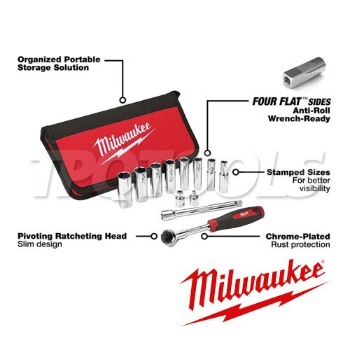 ชุดเฟืองวงล้อเมตริกไดรฟ์ 12 ชิ้น 3/8” ของเรามอบความคล่องตัวและการเข้าถึงขั้นสูงสุด เฟืองล้อรูปทรงเพรียวบางมีหัววงล้อหมุนได้ ช่วยให้คุณใช้เป็นเฟืองวงล้อ ตัวขับน็อต หรือมุมใดก็ได้ที่อยู่ระหว่างนั้น FOUR FLAT™ Sides ของเราป้องกันการหมุนและพร้อมใช้ประแจ ขนาดซ็อกเก็ตเมตริกจะถูกประทับลงในแฟลตเพื่อให้มองเห็นได้ดีขึ้นและอ้างอิงได้ง่าย ชุดประแจวงล้อถูกจัดเก็บไว้ในกระเป๋าหิ้วแบบอ่อนซึ่งมีรางปลั๊กไฟเพื่อเก็บซ็อกเก็ตและอุปกรณ์เสริมให้เป็นระเบียบ ทั้งในและนอกไซต์งาน- การออกแบบโปรไฟล์เพรียวบางของหัววงล้อหมุนได้