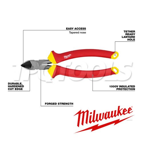 48-22-2208 (006199201) คีมตัดปากเฉียง 8 นิ้ว หุ้มฉนวนกันไฟฟ้า 1000V MILWAUKEE (มิลวอคกี้)