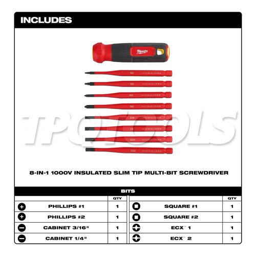 48-22-2218 (006198001) ไขควงหุ้มฉนวนกันไฟฟ้า 8-in-1 MILWAUKEE (มิลวอคกี้)