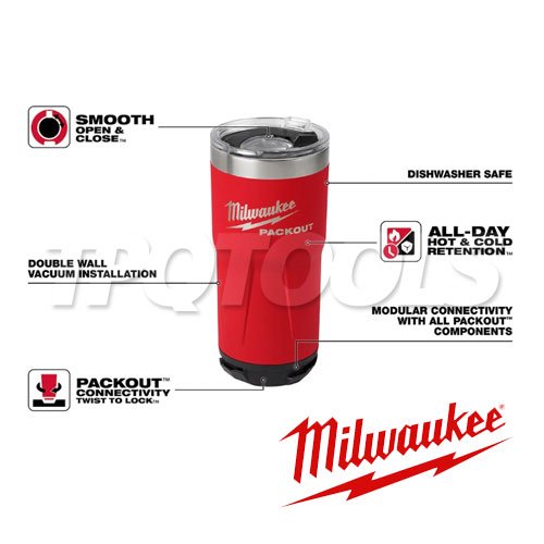 แก้วน้ำ PACKOUT™ ขนาด 20 ออนซ์ของเรารักษาอุณหภูมิได้ยาวนานที่สุด ทำให้เครื่องดื่มร้อนหรือเย็นได้ตลอดทั้งวัน แก้วน้ำ PACKOUT™ ขนาด 20 ออนซ์มีคุณสมบัติการเชื่อมต่อ PACKOUT™ แบบบิดและล็อค คุณจึงสามารถติดแก้วน้ำไว้ที่ด้านบนของโซลูชัน PACKOUT™ ซึ่งช่วยให้จัดเก็บเครื่องดื่มได้อย่างปลอดภัยในสถานที่ทำงาน ฝาปิดเปิดและปิดที่นุ่มนวลช่วยให้เลื่อนด้วยมือที่สวมถุงมือได้อย่างรวดเร็วและง่ายดาย ในขณะเดียวกันก็ป้องกันสิ่งสกปรกและเศษต่างๆ ให้ห่างจากช่องเปิดของแก้วน้ำ แก้วน้ำ PACKOUT™ ขนาด 20 ออนซ์ของเราใช้กับเครื่องล้างจานได้ MILWAUKEE® PACKOUT™ เป็นระบบจัดเก็บข้อมูลแบบโมดูลาร์ที่มีความอเนกประสงค์และทนทานที่สุดในอุตสาหกรรม